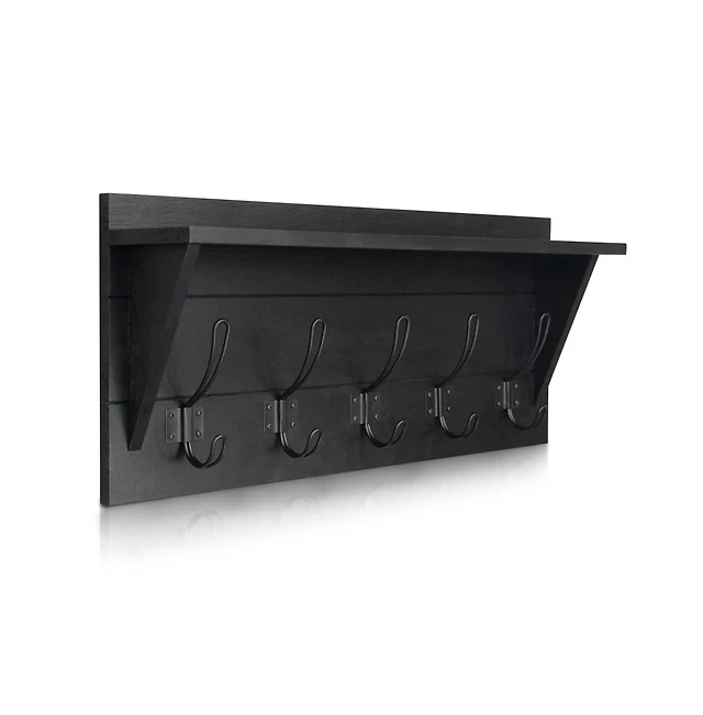 Rustic Wall Mounted Coat Rack Shelf - Wooden Country Style 24" Entryway With Hooks Solid Pine Wood For Entryway, Kitchen, Bathroom