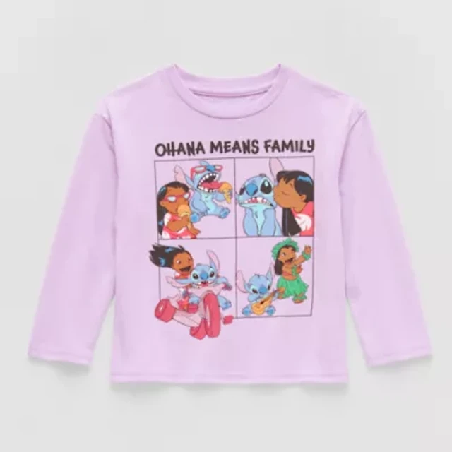 Toddler Girls Crew Neck Long Sleeve Regular Fit Lilo & Stitch Graphic T-Shirt