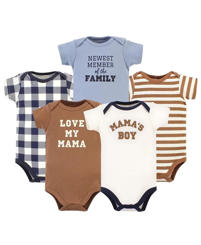 Hudson Baby Boys Soft Cotton Long-Sleeve Bodysuit Bundle (5-Count)