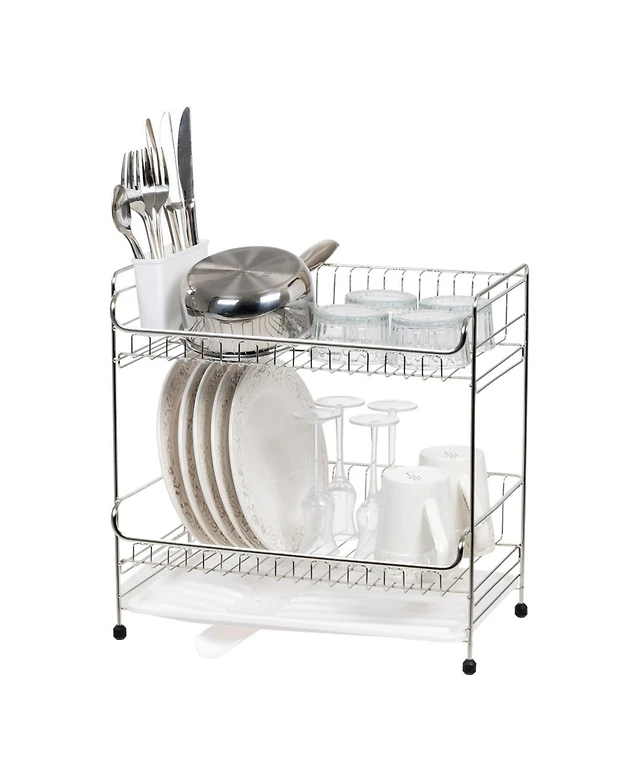 Iris Usa 2-tier Medium-sized Dish Rack with Drain Spout, White