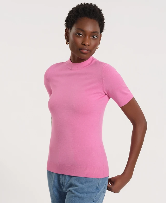 Isaac Mizrahi Women's Mock Neck Short Sleeve Sweater