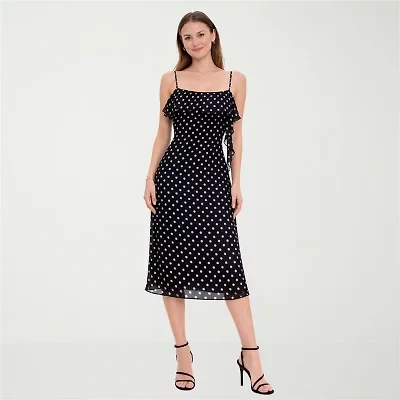Jump Apparel Womens Juniors Midi Polka Dot A-Line Dress