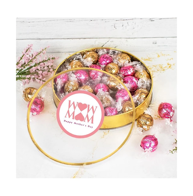 Mother's Day Candy Gift Tin with Chocolate Lindor Truffles by Lindt Large Plastic Tin with Sticker - Mom - By Just Candy