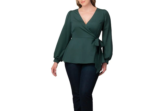Kiyonna Plus Julia Long Sleeve Wrap Dress