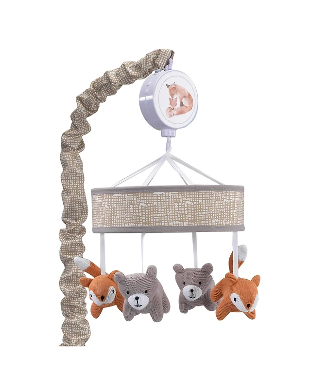 Lambs & Ivy Painted Forest Gray/Beige Fox and Bear Baby Crib Musical Mobile