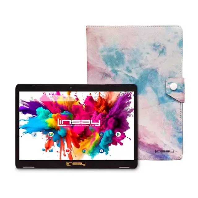New Linsay 10.1" Tablet 128GB with Flower Case with Super Screen Ips Quad Core 4GB Ram Android 14
