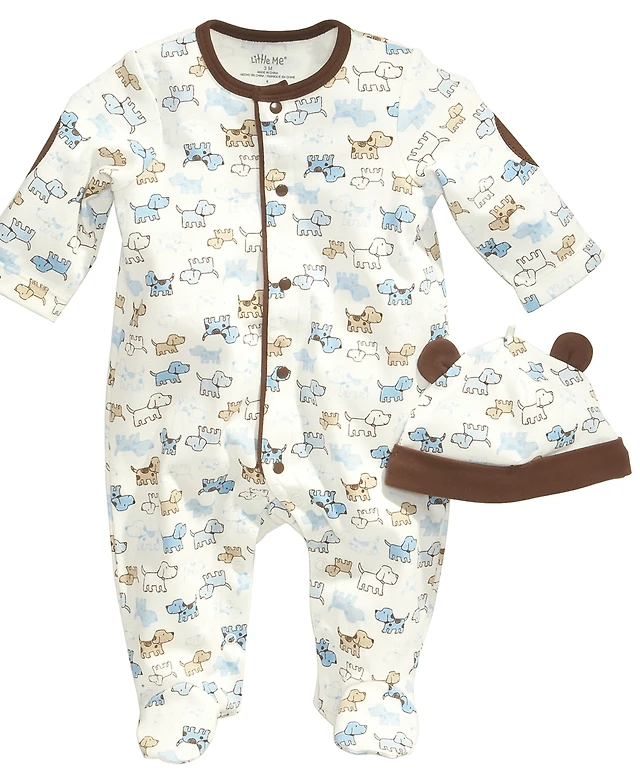 Little Me Baby Boys Cute Puppies Hat and Footed Coveralls Set