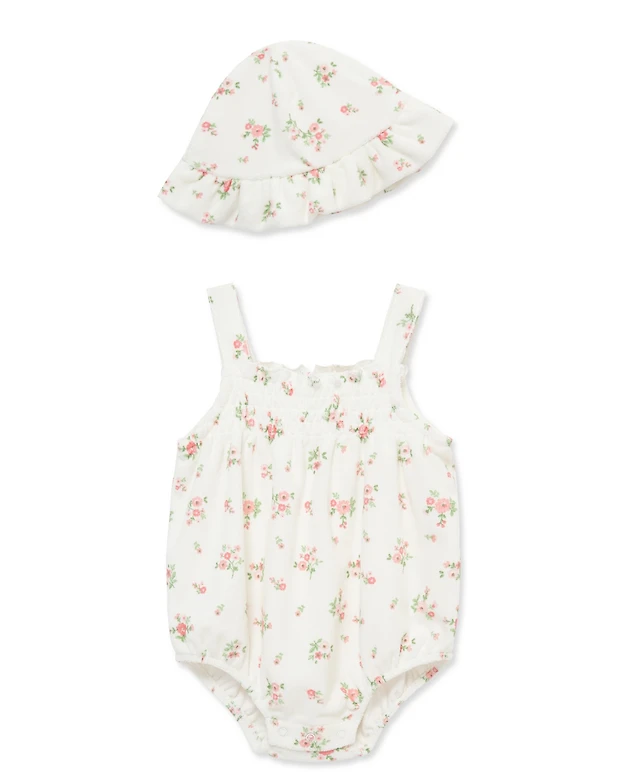 Little Me Baby Girls' Embroidered Romper and Hat, 2-Piece Set