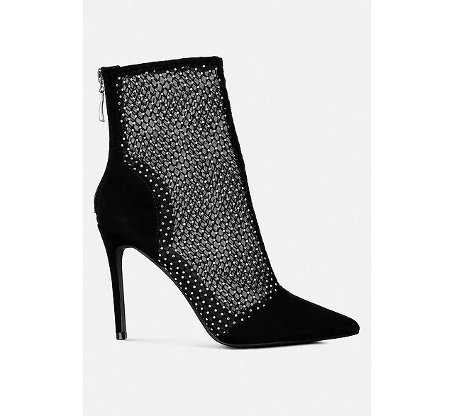 Fortunate Rhinestones Embellished Mesh Boots