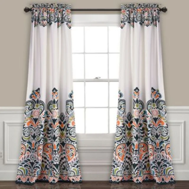 Lush Decor Tanisha Light Filtering Window Curtain Panels Pair 52"W x 63"L Tangerine & Turquoise - Floral Curtains for Bedroom - Drapes