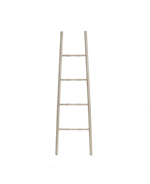 LuxenHome Solid Wood Natural 4-Rung 59-Inch Tall Blanket Ladder