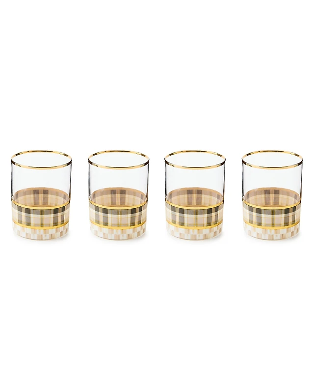 MacKenzie-Childs Violet Check Handmade Tumbler Glasses, Set of 2