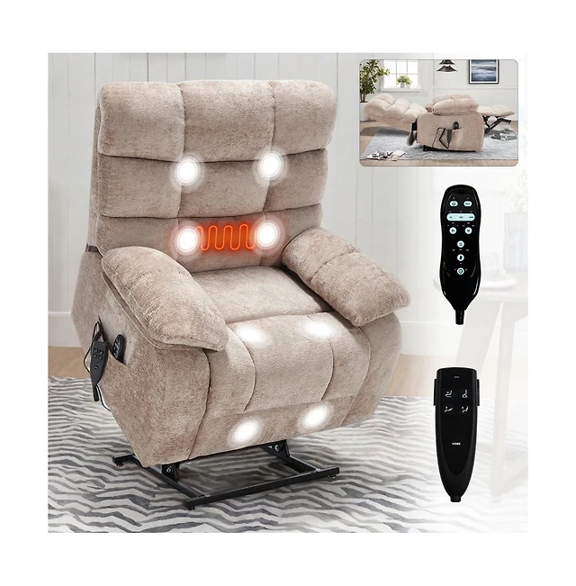 Maison Boucle Oversized Chenille Lift Recliner with Heat & Massage, Cup Holders, Dual Motor Electric Chair for Seniors-Maison