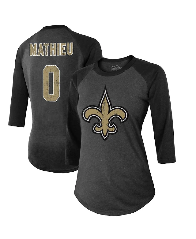 Women's Majestic Threads Tyrann Mathieu Black New Orleans Saints Name & Number Raglan 3/4 Sleeve T-shirt