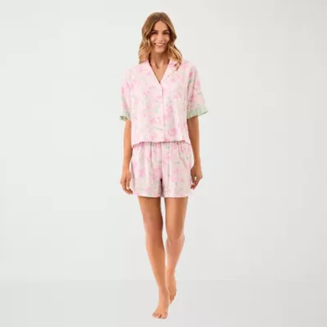 Martha Stewart Womens V-Neck Short Sleeve 2-pc. Pajama Sets
