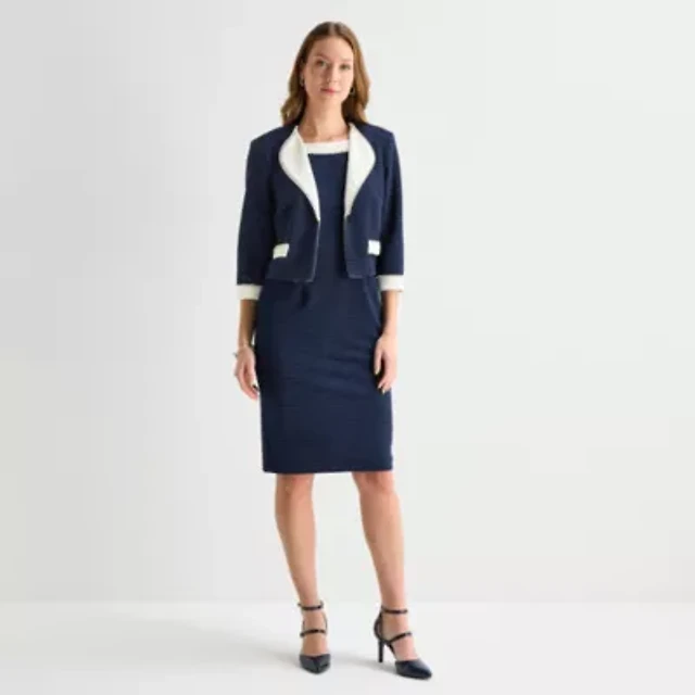Maya Brooke Womens Plus Windowpane Jacket Dress