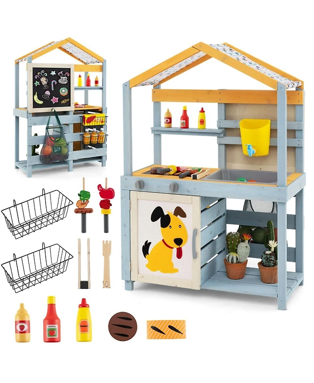 Kids Corner Wooden Kitchen Playset with Cookware Accessories
