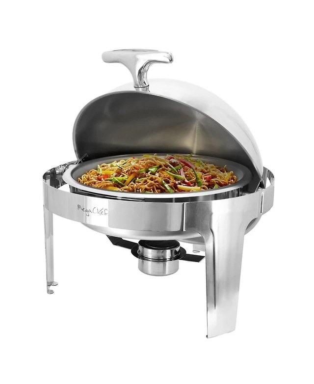 MegaChef 6.3 Quart Round Stainless Steel Dome Roll Top Professional Chafing Dish/Food Warmer/Buffet Server Serving Dish