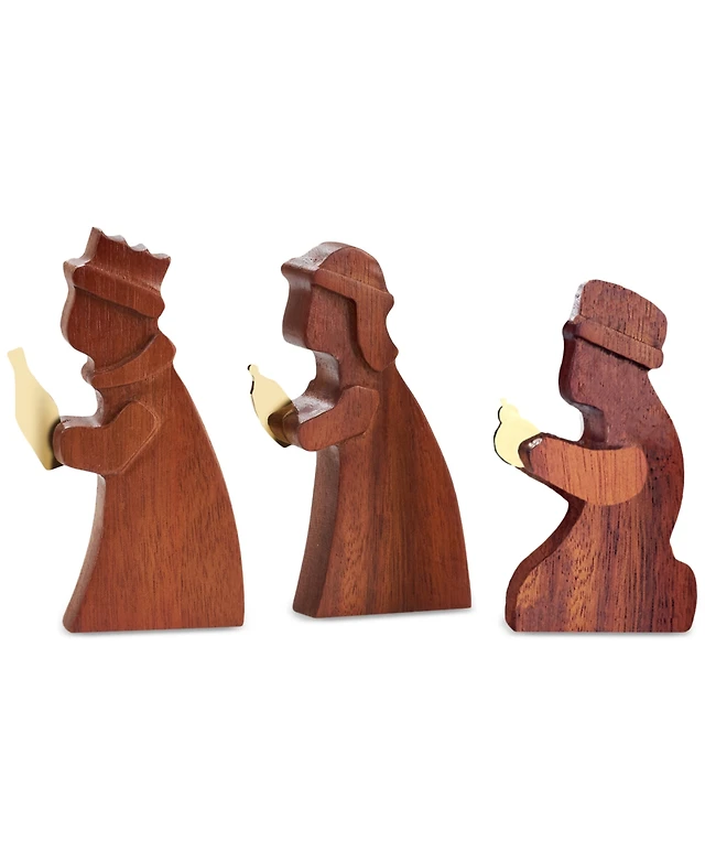 Nambe Acacia Wood Gold-Plate Accent Wisemen, Set of 3