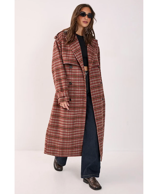 Nasty Gal Women's Check Vinyl Collar Trench Coat