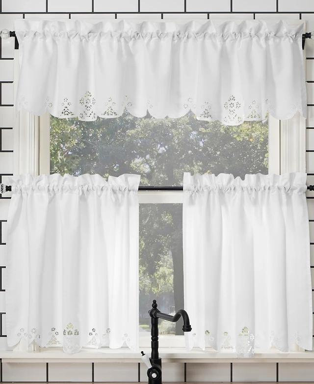 Allerton Embroidered Trellis Semi-Sheer Rod Pocket Kitchen Curtain Valance