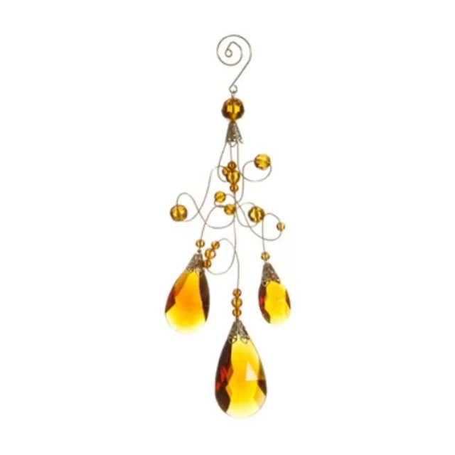 9.75'' Amber and Gold Faceted Beads Christmas Teardrop Ornament