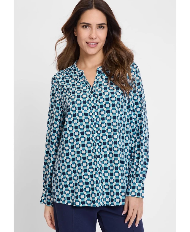 Olsen Women's Tropic Mix Print Tunic Blouse