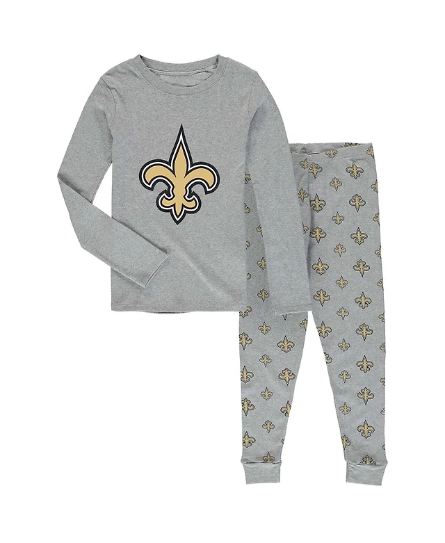 Preschool Boys and Girls Heathered Gray New Orleans Saints Long Sleeve 2 piece T-shirt Pants Sleep Set