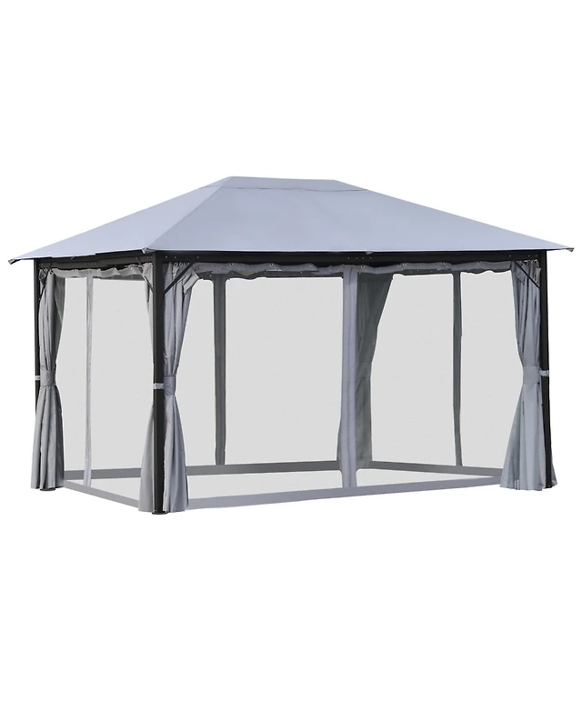 Outsunny 12 x 12 Hardtop Patio Gazebo, Netting Curtains,