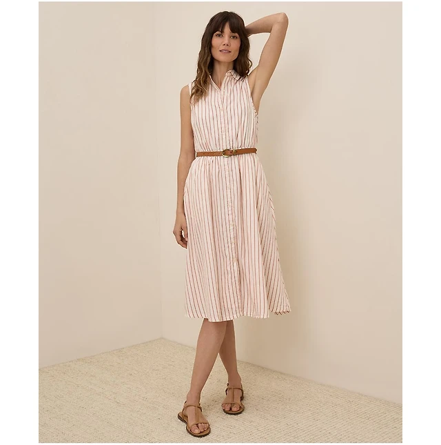 Pact Women's Organic Cotton Coastal Double Gauze Tie Waist Midi Dress