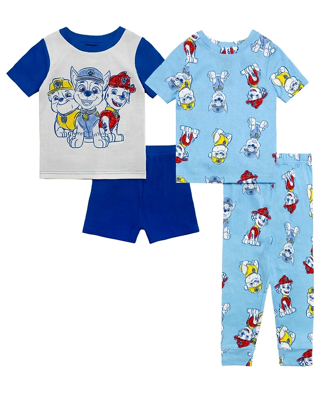 Paw Patrol Boys' Toddler 2T-4T Sketchypaw Graphic Tops, Shorts, and Pants, 4-Piece Pajama Set