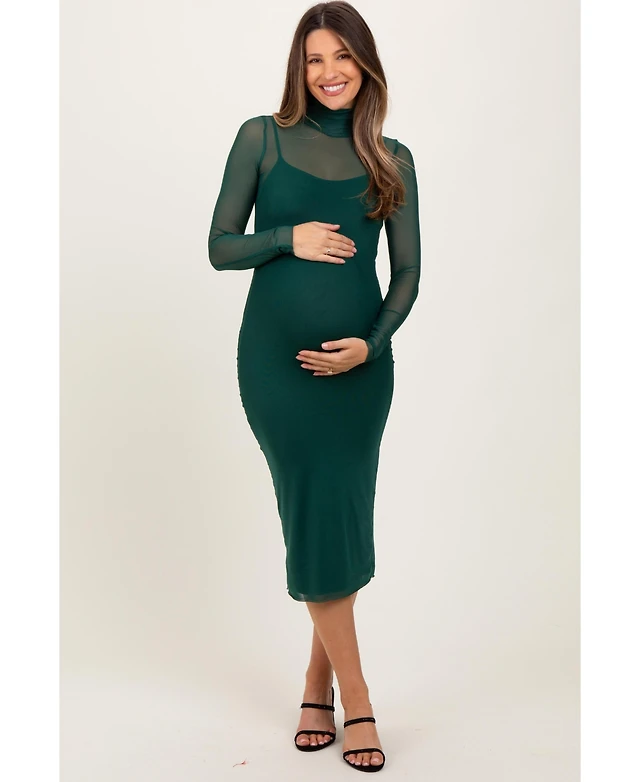 Pinkblush Maternity Black Mesh Overlay Off Shoulder Long Sleeve Midi Dress