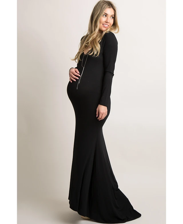 Pinkblush Maternity Black Shoulder Bow Detail Maxi Sweater Dress