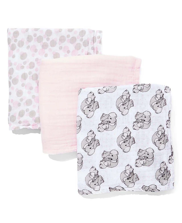 Precious Moments Baby Boys and Girls 3 Piece Coordinating Muslin Swaddling Blankets Set