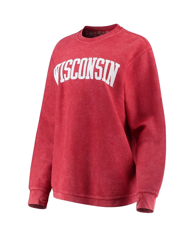 Women's Pressbox Red Distressed Wisconsin Badgers Comfy Cord Vintage-Like Wash Basic Arch Pullover Sweatshirt