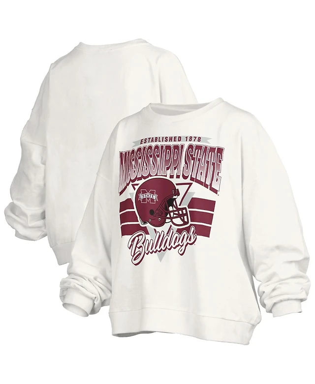 Pressbox Women's White Mississippi State Bulldogs Oversized Janice Retro Waist-Length Pullover Sweatshirt