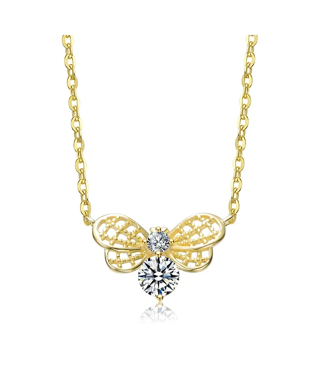 14k Gold Plated Sterling Silver with Cubic Zirconia Clusters Butterfly Stud Earrings