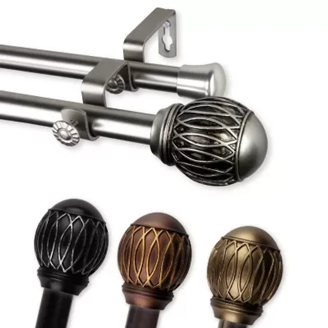 Rod Desyne Double 13/16" Adjustable Curtain with Cage Finials