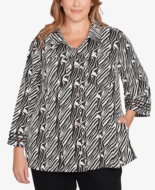 Ruby Rd. Plus Size Sweater Trimmed Cozy Animal Print Top