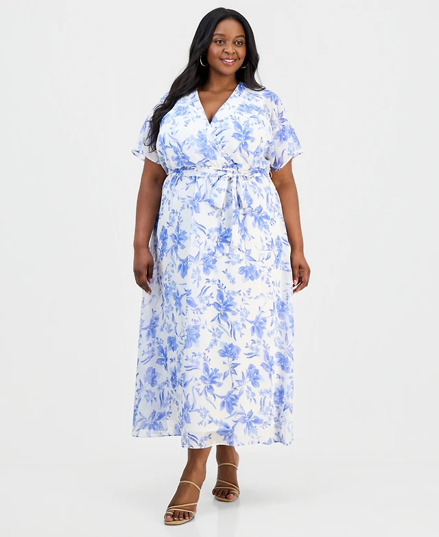 Sandra Darren Plus Printed Flutter-Sleeve Maxi Dress