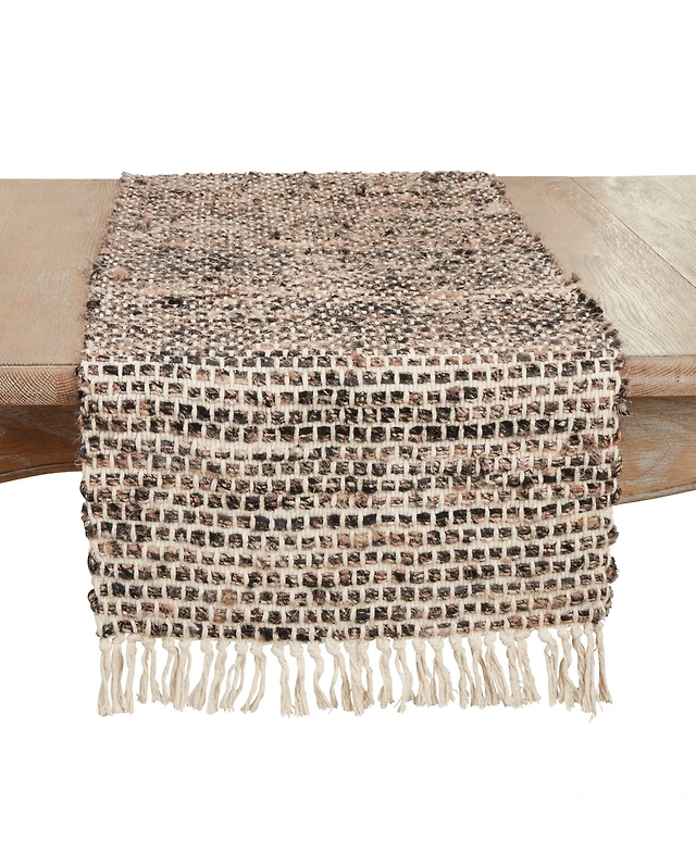 Saro Lifestyle Leather Chindi Stripe Fringed Table Runner, 16"x72"