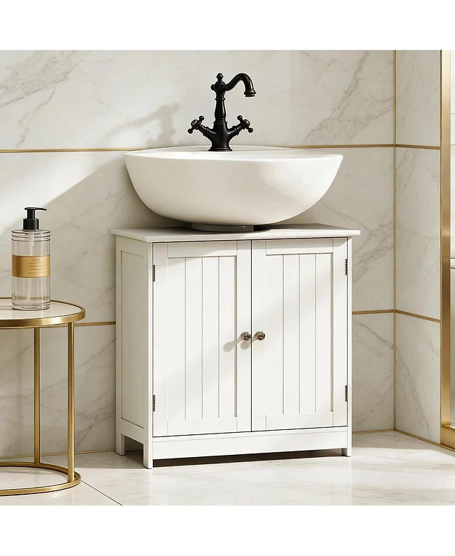 Sillysis 23.5 Inch Under Sink Bathroom Cabinet, Mdf Vanity with Adjustable Shelf for Pedestal Storage