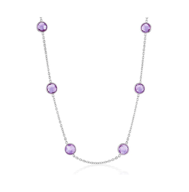 Sterling Silver, Bezel-Set 7mm Round Gem Station Necklace
