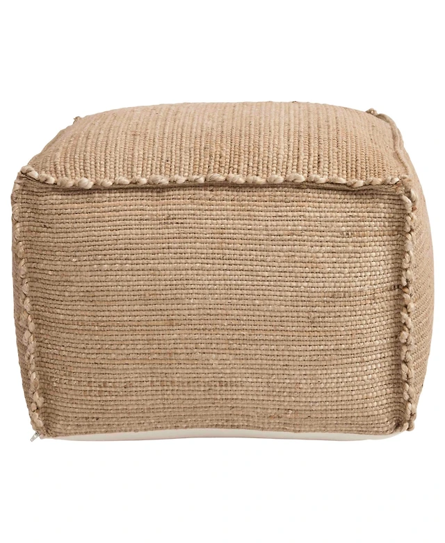 Storied Home Handwoven 24" Jute Pouf with Flanged Edges