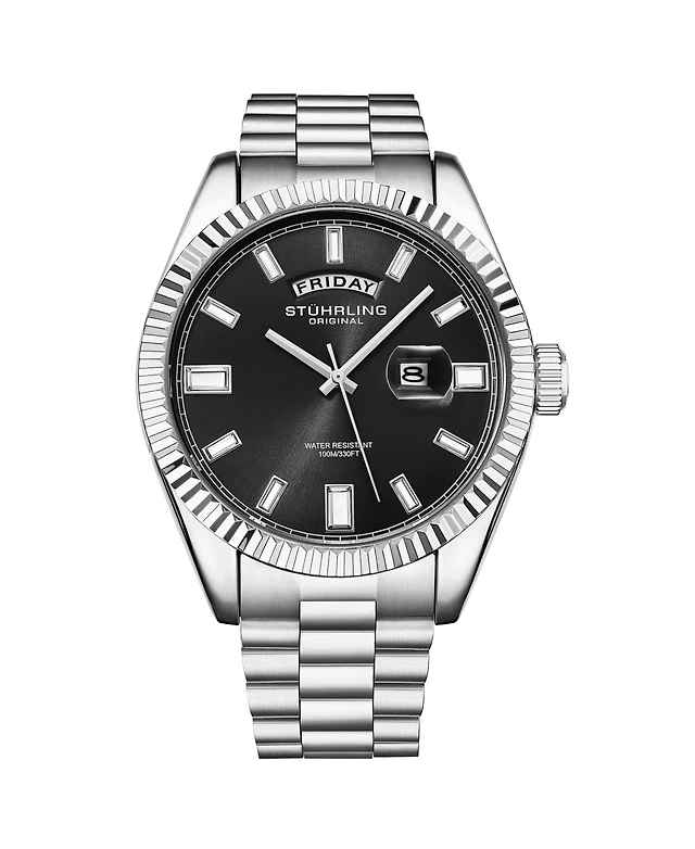 Stuhrling Datemaster Ii Men s Swiss Automatic 42mm Stainless Steel Watch, Dial, Fluted Bezel, Day & Date