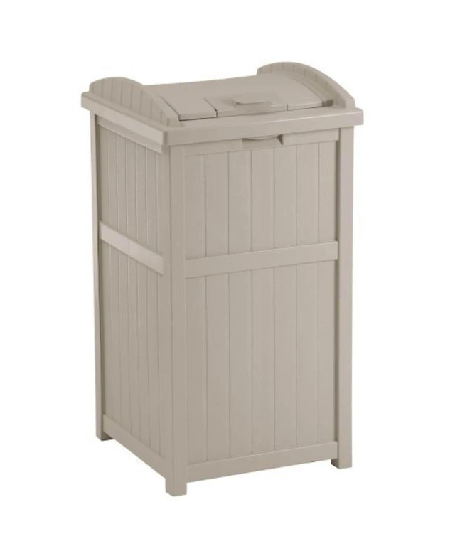 Suncast Trash Hideaway Outdoor Patio 33 Gallon Garbage Waste Trash Can Bin