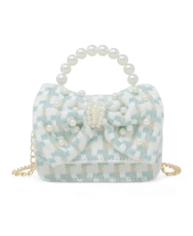 Tiny Treats + Zomi Gems Girls Quilted Pearl Handle Bow Ribbon Handbag