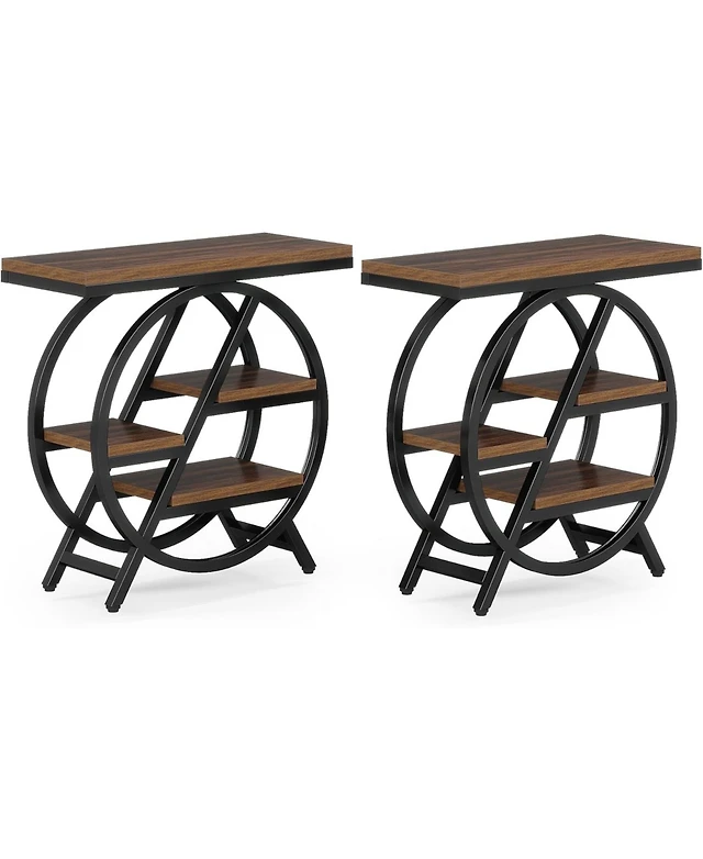 Tribesigns End Table Set of 2, 3-Tier Narrow End & Side Table with Storage and with Geometric Metal Frame, Industrial Nightstand and Bedside Table