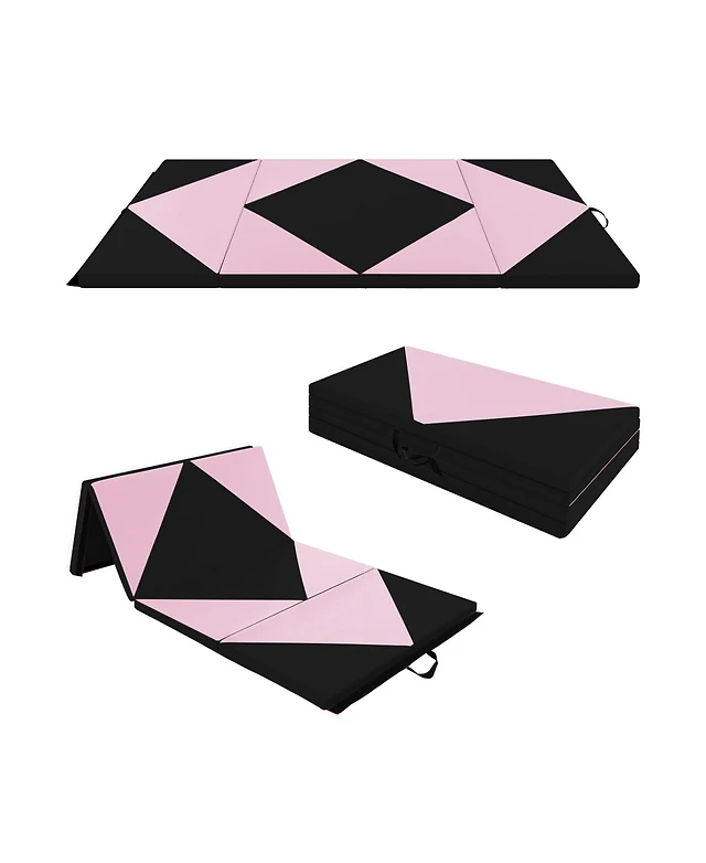 8 Feet Pu Leather Folding Gymnastics Mat with Hook and Loop Fasteners-Pink & Blue