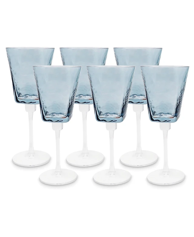 Vivience Square Shaped Rim Hammered Wine Glasses, Set of 6